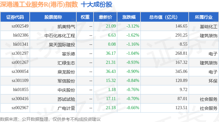 深港通工业服务R(港币)(483056)指数十大成份股详情如下: