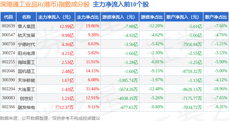 资金流向方面,深港通工业品R(港币)(483070)指数成份股当日主力资金净流入合计18.81亿元,游资资金净流出合计26.67亿元,散户资金净流入合计7.86亿元。成份股资金流向详情见下表: