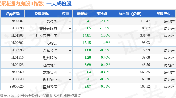 近10日内深港通内房股R(483083)指数成份股做了调整,剔除了2只股票。