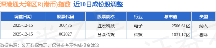 近10日内深港通大湾区R(港币)(483090)指数成份股做了调整,新纳入了1只股票,剔除了1只股票。