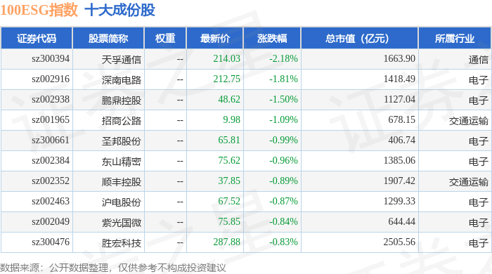近10日内100ESG(970027)指数成份股做了调整,新纳入了11只股票,剔除了11只股票。