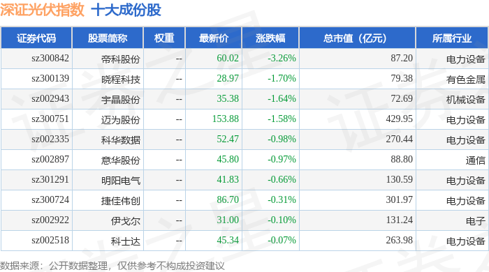 近10日内深证光伏(970035)指数成份股做了调整,新纳入了5只股票,剔除了6只股票。