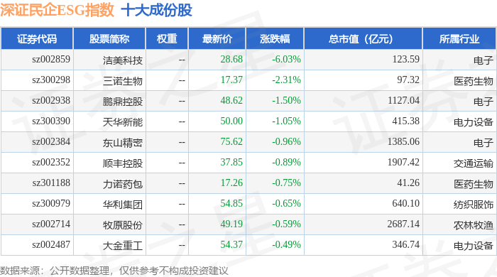 资金流向方面,深证民企ESG(970056)指数成份股当日主力资金净流入合计19.07亿元,游资资金净流出合计16.61亿元,散户资金净流出合计2.45亿元。成份股资金流向详情见下表: