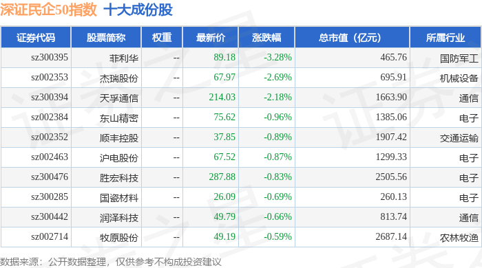 证券之星消息,12月19日,深证民企50(970057)指数报收于3360.62点,涨0.46%,成交1149.01亿元,换手率1.2%。当日该指数成份股中,上涨的有36家,藏格矿业以6.56%的涨幅领涨,下跌的有13家,菲利华以3.28%的跌幅领跌。