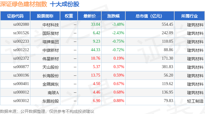 近10日内深证绿色建材(970077)指数成份股做了调整,新纳入了5只股票,剔除了5只股票。