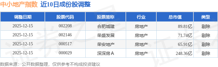 近10日内中小地产(971002)指数成份股做了调整,剔除了4只股票。