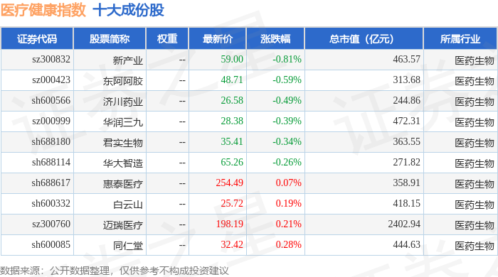 资金流向方面,医疗健康(980016)指数成份股当日主力资金净流入合计6.82亿元,游资资金净流出合计5.0亿元,散户资金净流出合计1.83亿元。成份股资金流向详情见下表: