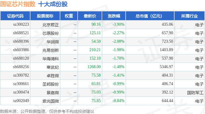 近10日内国证芯片(980017)指数成份股做了调整,新纳入了1只股票,剔除了1只股票。