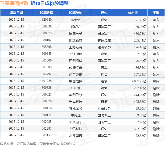 近10日内卫星通信(980018)指数成份股做了调整,新纳入了9只股票,剔除了9只股票。