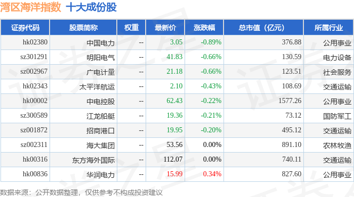 近10日内湾区海洋(980019)指数成份股做了调整,新纳入了2只股票。