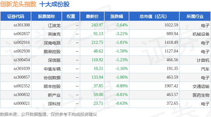 创新龙头(980036)指数十大成份股详情如下: