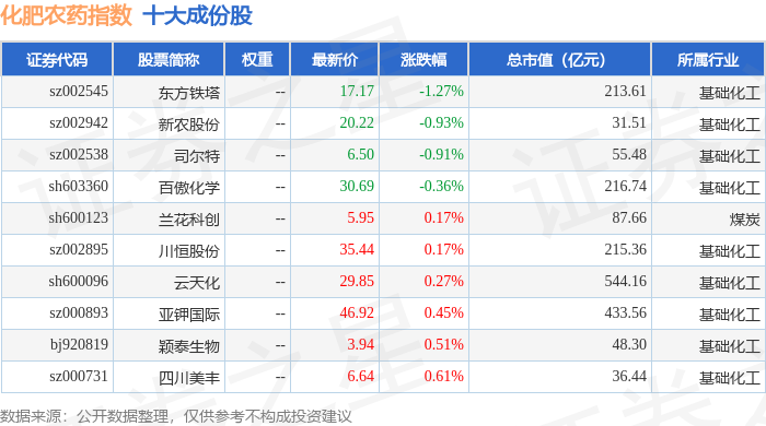 近10日内化肥农药(980035)指数成份股做了调整,新纳入了4只股票,剔除了20只股票。