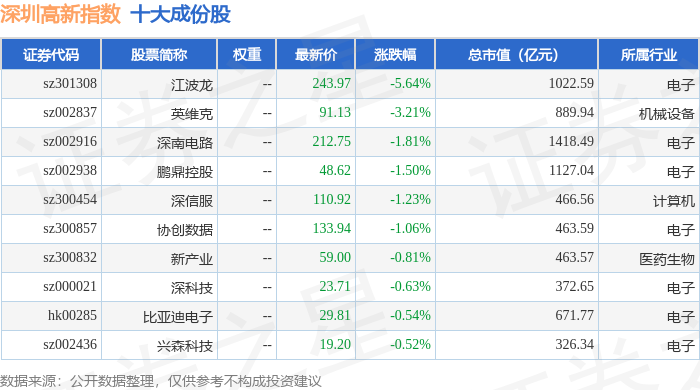 资金流向方面,深圳高新(980038)指数成份股当日主力资金净流出合计3.27亿元,游资资金净流出合计1266.01万元,散户资金净流入合计3.39亿元。成份股资金流向详情见下表: