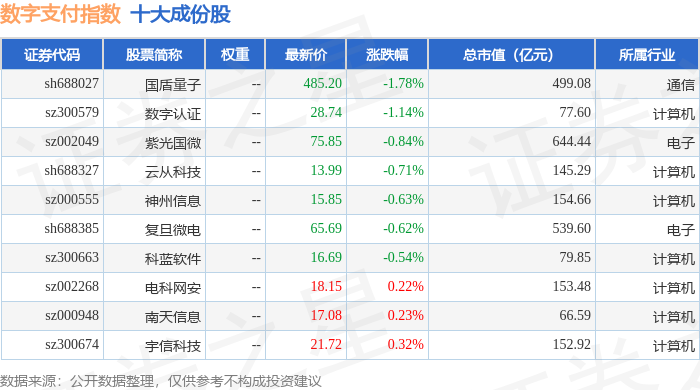 近10日内数字支付(980113)指数成份股做了调整,新纳入了2只股票,剔除了2只股票。
