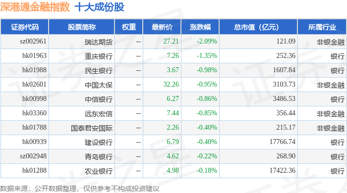 深港通金融(983025)指数十大成份股详情如下: