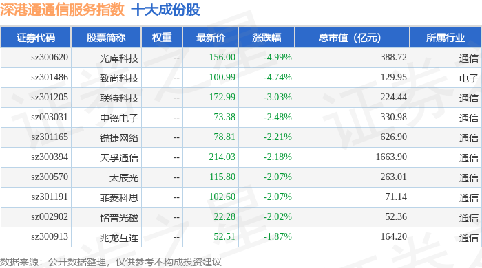 证券之星消息,12月19日,深港通通信服务(983033)指数报收于12458.37点,涨0.78%,成交887.44亿元,换手率3.15%。当日该指数成份股中,上涨的有45家,长飞光纤光缆以12.01%的涨幅领涨,下跌的有17家,光库科技以4.99%的跌幅领跌。