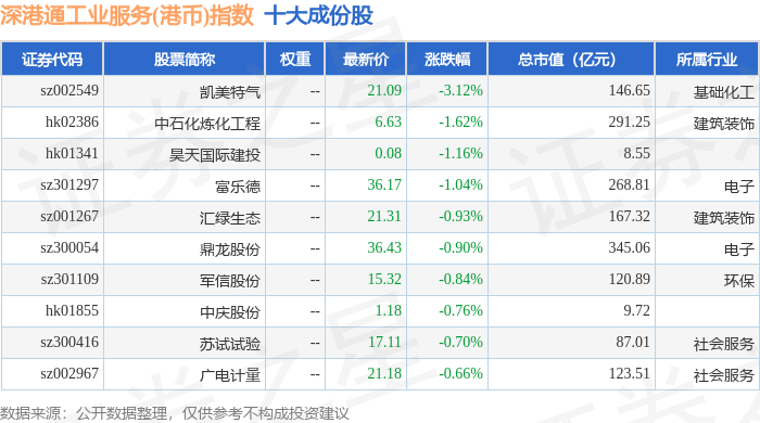 深港通工业服务(港币)(983056)指数十大成份股详情如下: