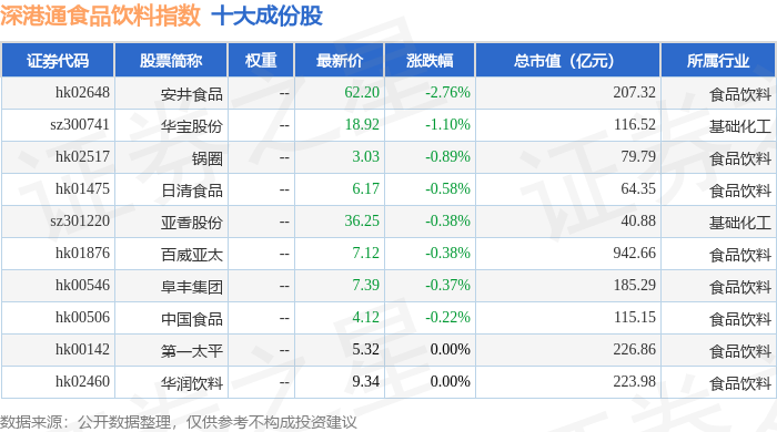 深港通食品饮料(983065)指数十大成份股详情如下: