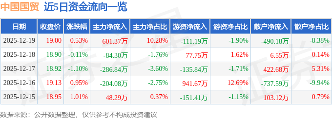 12月19日的资金流向数据方面,主力资金净流入601.37万元,占总成交额10.28%,游资资金净流出111.19万元,占总成交额1.9%,散户资金净流出490.18万元,占总成交额8.38%。