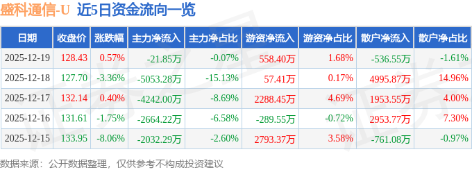 证券之星消息,截至2025年12月19日收盘,盛科通信(688702)报收于128.43元,上涨0.57%,换手率1.3%,成交量2.63万手,成交额3.33亿元。