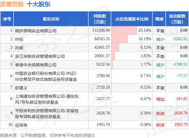 根据浙富控股2025年三季报公布的十大股东详情如下: