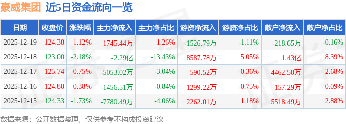 12月19日的资金流向数据方面,主力资金净流入1745.44万元,占总成交额1.26%,游资资金净流出1526.79万元,占总成交额1.11%,散户资金净流出218.65万元,占总成交额0.16%。