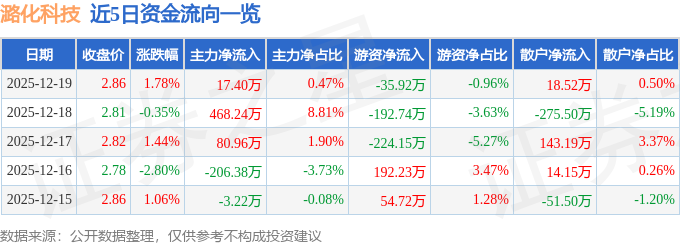 证券之星消息,截至2025年12月19日收盘,潞化科技(600691)报收于2.86元,上涨1.78%,换手率0.55%,成交量13.18万手,成交额3738.75万元。