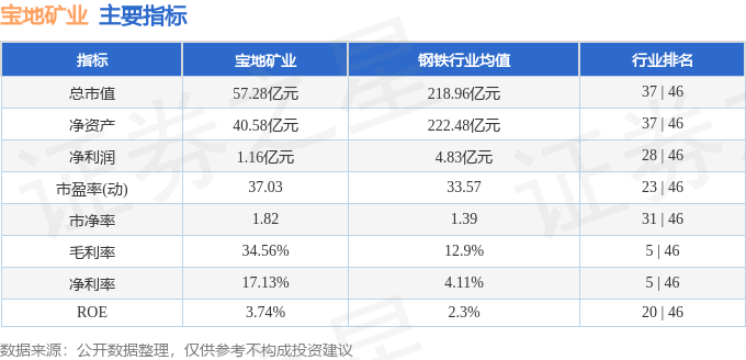 宝地矿业2025年三季报显示,前三季度公司主营收入11.45亿元,同比上升17.47%;归母净利润1.16亿元,同比下降32.0%;扣非净利润1.03亿元,同比下降33.95%;其中2025年第三季度,公司单季度主营收入4.23亿元,同比上升8.25%;单季度归母净利润5440.68万元,同比下降19.67%;单季度扣非净利润4929.13万元,同比下降23.63%;负债率42.39%,投资收益1233.88万元,财务费用718.85万元,毛利率34.56%。宝地矿业(601121)主营业务:铁矿石的开采、选矿加工和铁精粉销售。