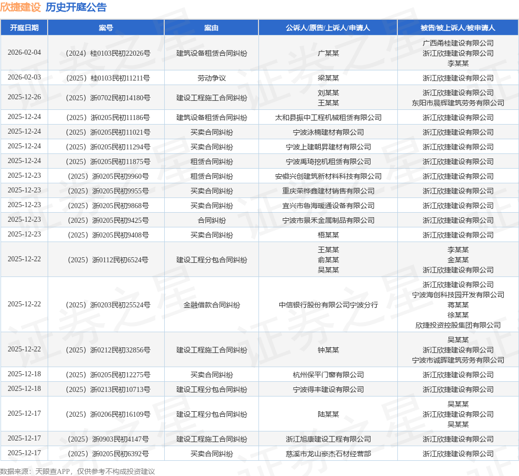 证券之星消息,根据天眼查APP显示,近日公布了一则浙江欣捷建设有限公司作为被告/被上诉人的开庭公告,详细内容如下: