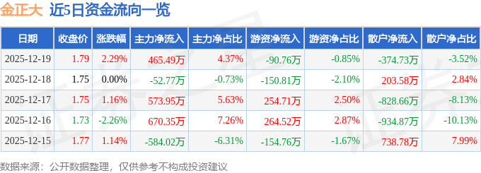 12月19日的资金流向数据方面,主力资金净流入465.49万元,占总成交额4.37%,游资资金净流出90.76万元,占总成交额0.85%,散户资金净流出374.73万元,占总成交额3.52%。