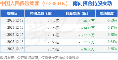 证券之星消息,12月19日南向资金减持1646.9万股中国人民保险集团(01339.HK)。近5个交易日中,获南向资金减持的有5天,累计净减持6741.79万股。近20个交易日中,获南向资金减持的有11天,累计净减持5264.3万股。截至目前,南向资金持有中国人民保险集团(01339.HK)26.12亿股,占公司已发行普通股的29.92%。