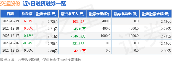 证券之星消息,截至2025年12月19日收盘,交运股份(600676)报收于5.96元,上涨6.81%,换手率2.04%,成交量20.93万手,成交额1.22亿元。
