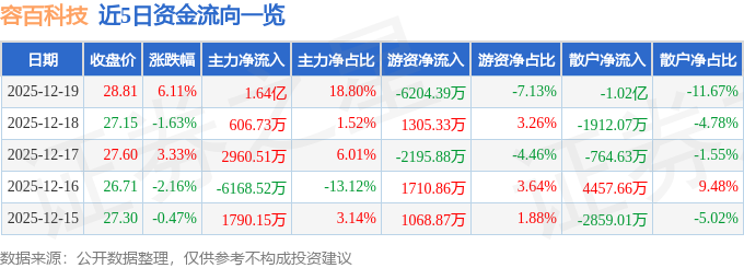 证券之星消息,截至2025年12月19日收盘,容百科技(688005)报收于28.81元,上涨6.11%,换手率4.35%,成交量31.09万手,成交额8.7亿元。