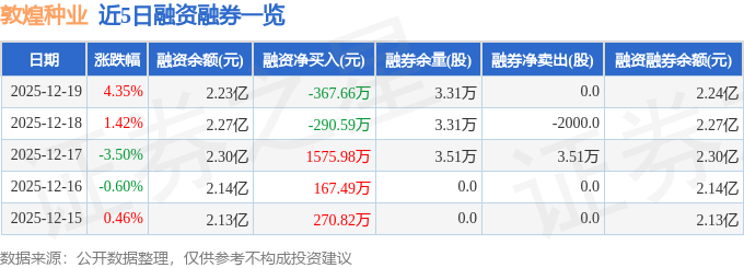 证券之星消息,截至2025年12月19日收盘,敦煌种业(600354)报收于6.72元,上涨4.35%,换手率7.9%,成交量41.69万手,成交额2.77亿元。