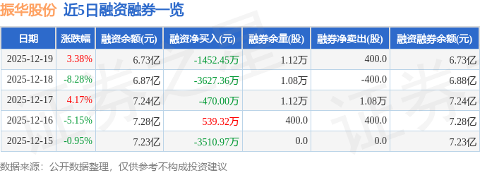 振华股份融资融券信息显示,融资方面,当日融资买入6370.51万元,融资偿还7822.96万元,融资净偿还1452.45万元。融券方面,融券卖出400.0股,融券偿还0.0股,融券余量1.12万股,融券余额30.79万元。融资融券余额6.73亿元。