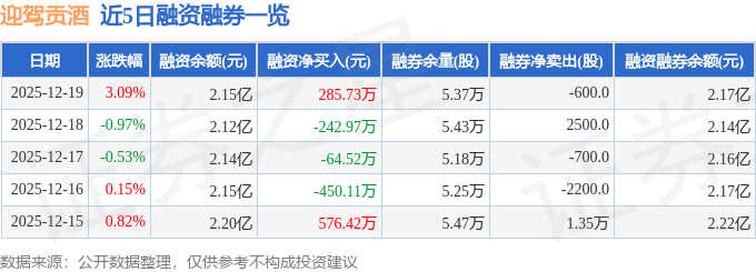 迎驾贡酒融资融券信息显示,融资方面,当日融资买入1923.27万元,融资偿还1637.54万元,融资净买入285.73万元。融券方面,融券卖出1000.0股,融券偿还1600.0股,融券余量5.37万股,融券余额215.28万元。融资融券余额2.17亿元。