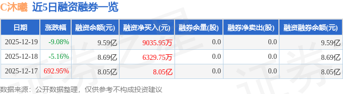 C沐曦融资融券信息显示,融资方面,当日融资买入4.38亿元,融资偿还3.48亿元,融资净买入9035.95万元,净买入额两市排名第17,连续3日净买入累计9.59亿元。融券方面,融券卖出0.0股,融券偿还0.0股,融券余量0.0股,融券余额0.0万元。融资融券余额9.59亿元。