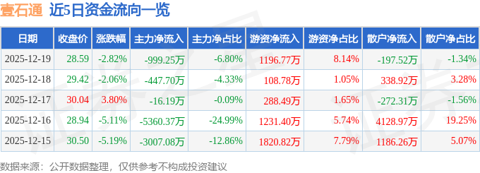 证券之星消息,截至2025年12月19日收盘,壹石通(688733)报收于28.59元,下跌2.82%,换手率2.53%,成交量5.06万手,成交额1.47亿元。