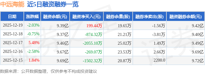 中远海能融资融券信息显示,融资方面,当日融资买入4646.83万元,融资偿还4447.39万元,融资净买入199.44万元。融券方面,融券卖出3000.0股,融券偿还1.86万股,融券余量19.65万股,融券余额228.14万元。融资融券余额9.42亿元。