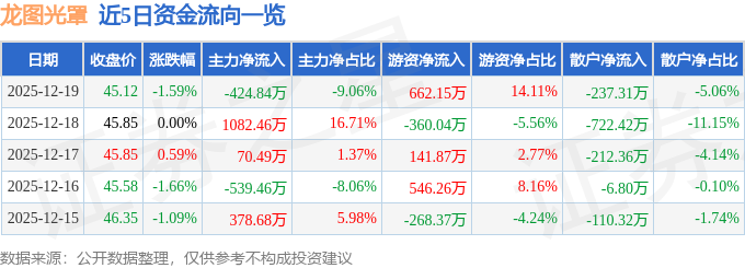 12月19日的资金流向数据方面,主力资金净流出424.84万元,占总成交额9.06%,游资资金净流入662.15万元,占总成交额14.11%,散户资金净流出237.31万元,占总成交额5.06%。