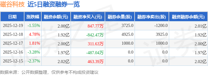 证券之星消息,截至2025年12月19日收盘,磁谷科技(688448)报收于41.85元,下跌1.55%,换手率3.1%,成交量1.49万手,成交额6222.2万元。