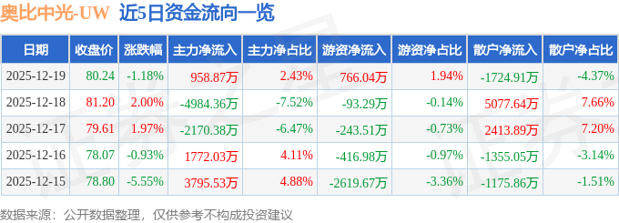 12月19日的资金流向数据方面,主力资金净流入958.87万元,占总成交额2.43%,游资资金净流入766.04万元,占总成交额1.94%,散户资金净流出1724.91万元,占总成交额4.37%。