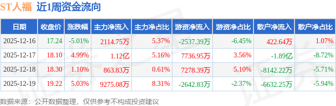 资金流向数据方面,本周ST人福主力资金合计净流入2.35亿元,游资资金合计净流入9835.12万元,散户资金合计净流出3.33亿元。本周资金流向一览见下表: