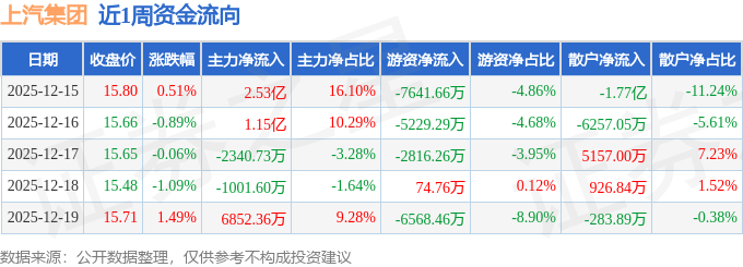 沪深股通持股方面,截止2025年12月19日收盘,上汽集团沪股通持股数为2.91亿股,占流通股比为251.0%。
