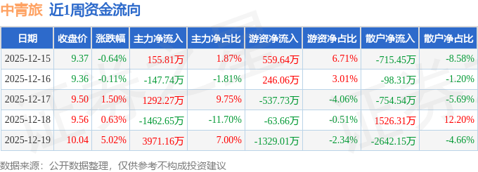 资金流向数据方面,本周中青旅主力资金合计净流入3808.85万元,游资资金合计净流出1124.71万元,散户资金合计净流出2684.15万元。本周资金流向一览见下表: