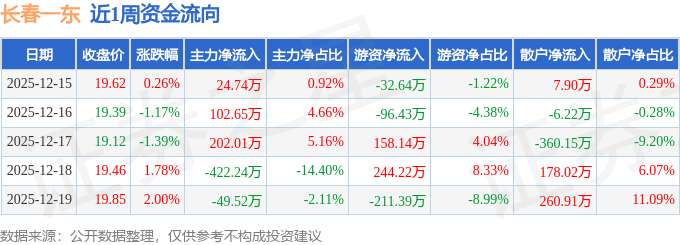 资金流向数据方面,本周长春一东主力资金合计净流出142.36万元,游资资金合计净流入61.9万元,散户资金合计净流入80.46万元。本周资金流向一览见下表: