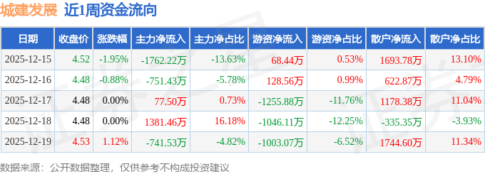 资金流向数据方面,本周城建发展主力资金合计净流出1796.22万元,游资资金合计净流出3108.06万元,散户资金合计净流入4904.28万元。本周资金流向一览见下表: