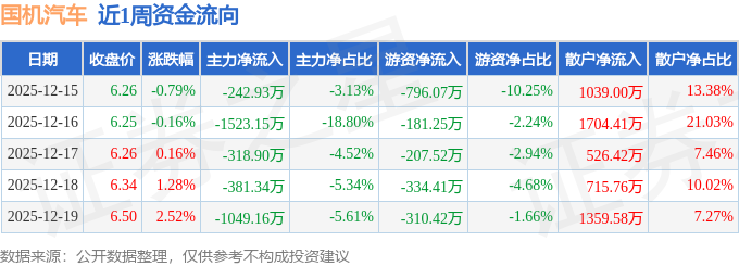 沪深股通持股方面,截止2025年12月19日收盘,国机汽车沪股通持股数为1051.04万股,占流通股比为70.0%。