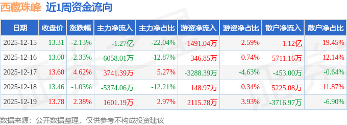 资金流向数据方面,本周西藏珠峰主力资金合计净流出1.88亿元,游资资金合计净流入814.26万元,散户资金合计净流入1.8亿元。本周资金流向一览见下表: