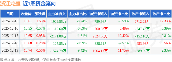 资金流向数据方面,本周浙江龙盛主力资金合计净流出5807.67万元,游资资金合计净流入3930.48万元,散户资金合计净流入1877.19万元。本周资金流向一览见下表: